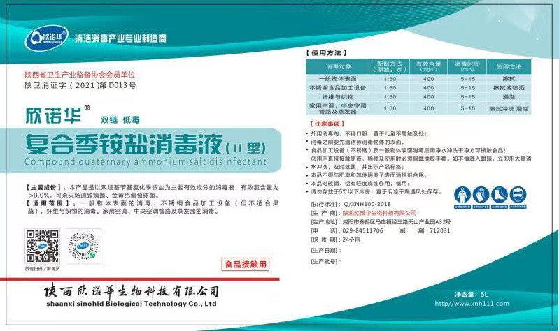 雙鏈季銨鹽消毒液欣諾華牌復(fù)合季銨鹽消毒液使用說明書