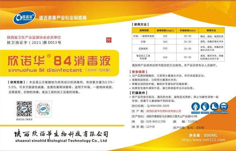欣諾華牌84消毒液的正確使用方法:本品的主要消毒成分是次氯酸鈉,有效氯含量3.0%~5.0%,可殺滅腸道致病菌、化膿性球菌。使用范圍:適用于環(huán)境及一般物體表面消毒,織物漂白,消毒,瓜果蔬菜消毒,食品飲料,乳制品,肉類,水產品,食用菌,果蔬等食品加工生產過程中的環(huán)境,設備,容器具,CIP管道的消毒。產品簡介:欣諾華牌84消毒液具有含量高,保質期長,運輸使用方便的特點,本品為廣譜,高效,低毒的含氯消毒劑,允許應用于食品,醫(yī)療等行業(yè)的消毒滅菌。