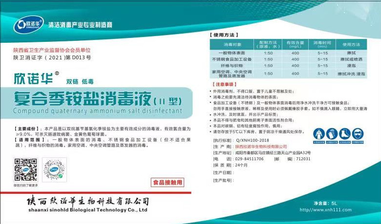 衛(wèi)生許可證號: 陜衛(wèi)消證字(2020)第D013號 執(zhí)行標準 Q/XNH100-2018