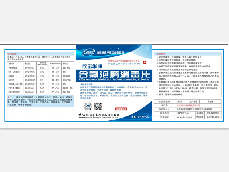 產(chǎn)品名稱: 欣諾華牌含氯泡騰消毒片 商標(biāo):