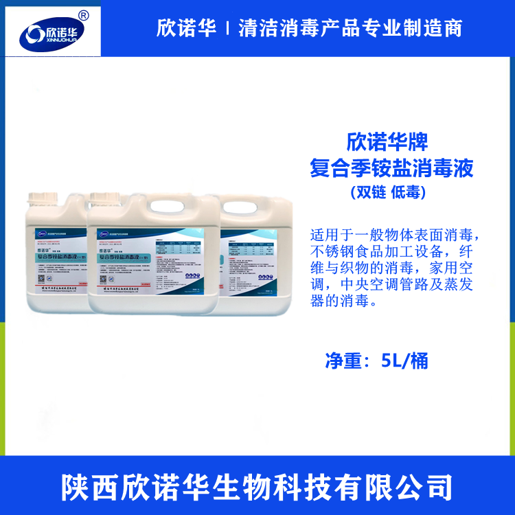 產(chǎn)品簡介: 欣諾華牌復(fù)合季銨鹽消毒液屬于第四代雙鏈季銨鹽消毒液,具有無色,無明顯氣味,中性,對呼吸道和皮膚無刺激,清潔消毒同時完成,保質(zhì)期長,運(yùn)輸不受管制,使用方便的特點(diǎn),本品為中效消毒劑,允許應(yīng)用于食品,醫(yī)療,家庭等行業(yè)的消毒。